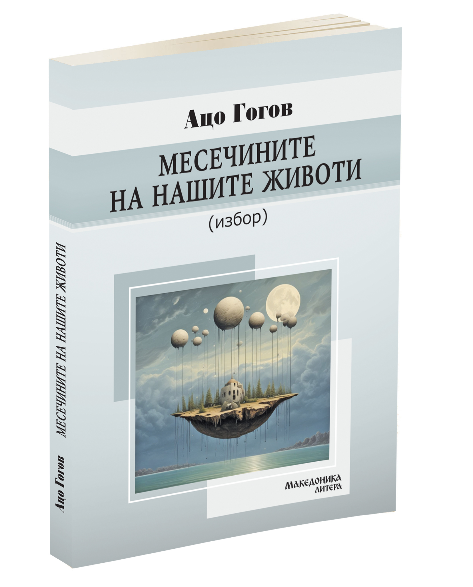 Книгата „Месечините на нашите животи“ содржи лирски прози, микрофикции и раскази од претходните книги на авторот, како и некои нови, необјавени раскази. Во овие мали прози е фатен светот од една зачудна, изместена перспектива, некаде на границата помеѓу јавето и сонот. Авторот наоѓа начин да ја еродира баналноста на секојдневието, и да продре до метафизичките својства на постоењето, при што играта и поигрувањето, кои се јавуваат како...